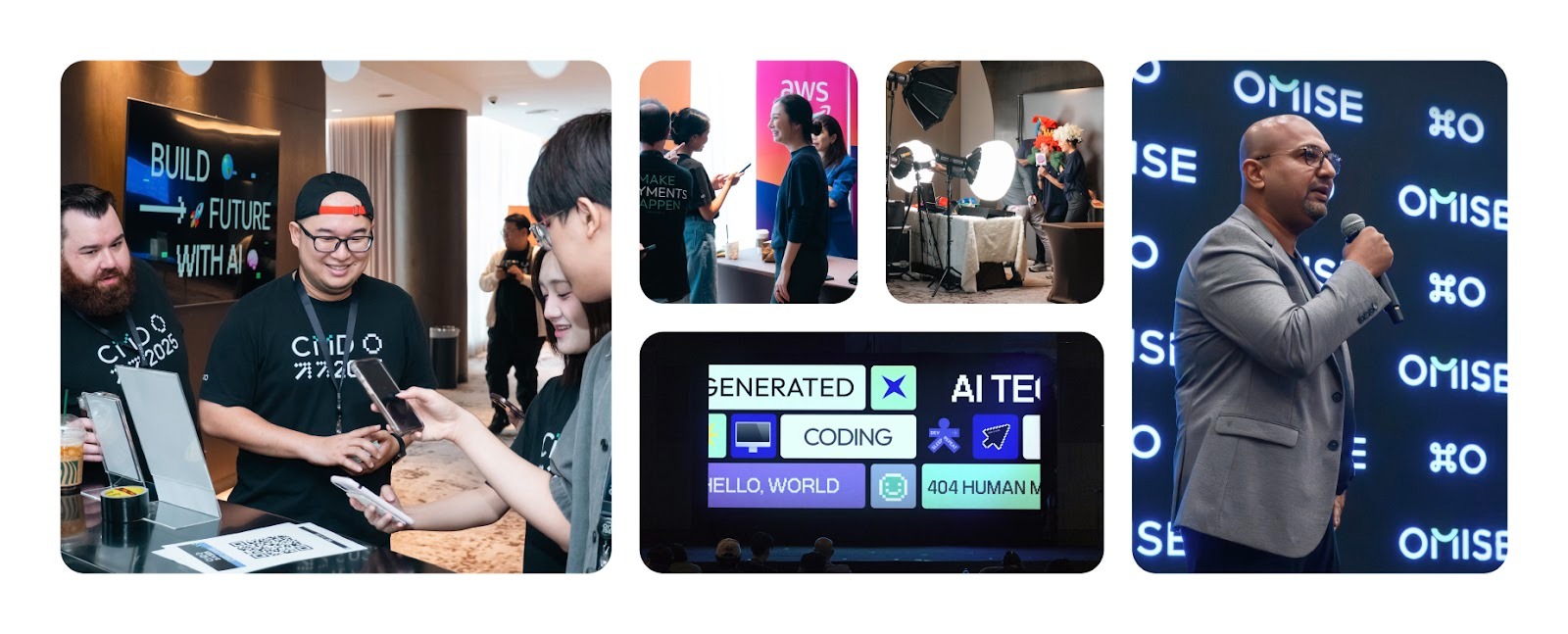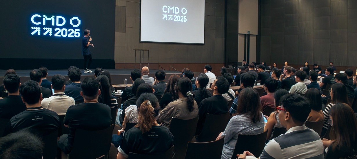 This year, we hosted the event just around the corner at the CDC Ballroom, a short stroll from the Omise office. From the moment you stepped in, you were greeted by a retro, 8-bit inspired Command O video lighting up every screen.