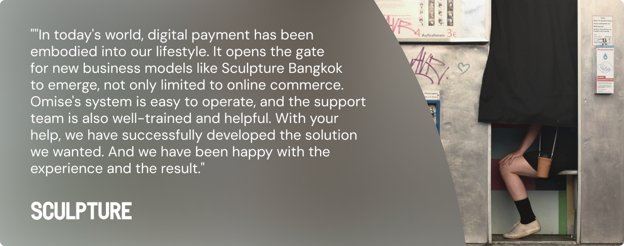 “ทุกวันนี้การจ่ายเงินแบบดิจิทัลกลายเป็นส่วนหนึ่งของชีวิตคนเราไปแล้ว และยังเปิดช่องทางให้เกิดธุรกิจรูปแบบใหม่ๆ อีกมากมาย ที่ไม่ใช่เพียงอีคอมเมิร์ซเท่านั้น Sculpture Bangkok เองก็เช่นกัน โอมิเซะช่วยพวกเราพัฒนาโซลูชันได้ตรงกับที่เรามองหา ระบบของโอมิเซะเชื่อมต่อง่ายและทีมช่วยเหลือก็พร้อมช่วยเหลืออย่างเต็มที่ตลอด”